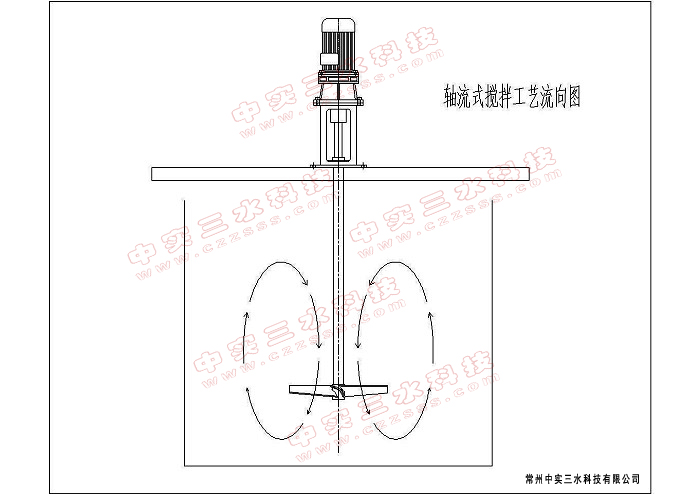 在孫先生的攪拌工藝需求中,需要的是能上、下流動的攪拌工藝,使生物流體充分攪拌混合,其實對于中低粘度的液體攪拌而言,軸流攪拌的推進式攪拌機是最科學、最適合的攪拌形式(如圖),還非常節能,另外,我們運用計算軟件計算攪拌流量和功率配置,結合我們的行業經驗,配置的技術參數也能實現恰到好處的工藝效果。而框式攪拌器帶動物料做的是環向流動,上下流動效果很弱。